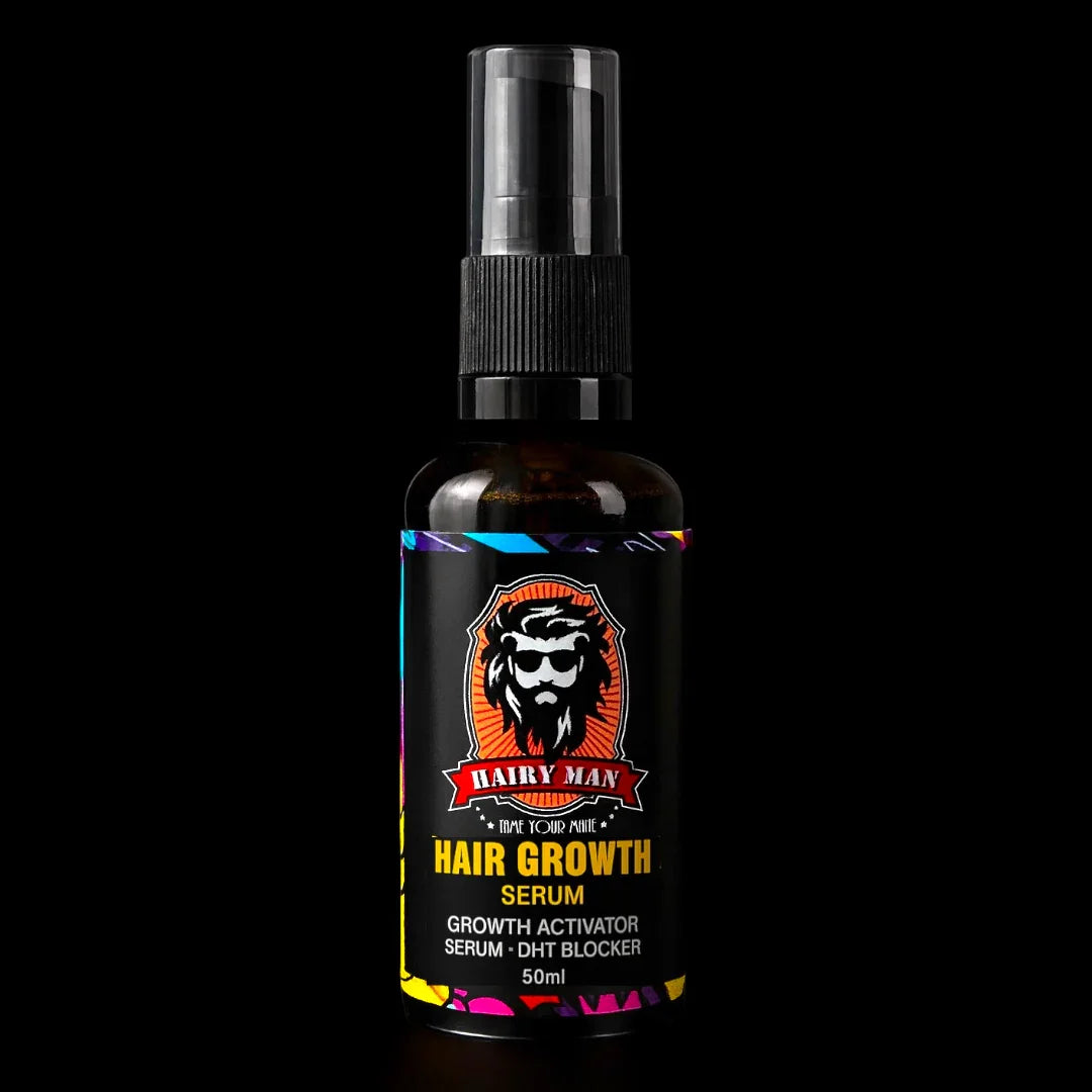 Hairy Man Care's Hair Growth Serum is a concentrated, leave-in treatment that revitalizes, strengthens, volumizes, and protects hair. It is ideal for repairing thinning hair, breakage, and split ends, ensuring a healthier, fuller head of hair over time.